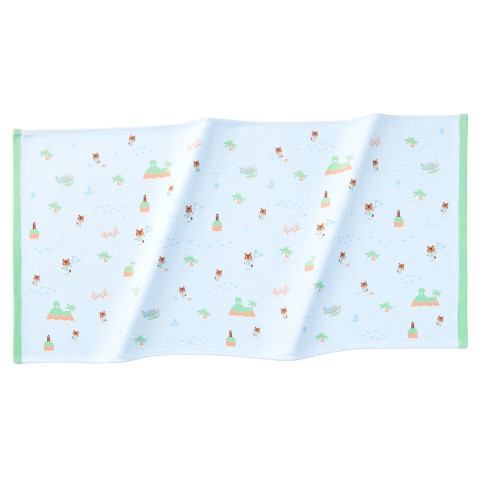 Das Strandtuch besteht zu 50% aus Baumwolle und zu 50% aus Polyester und ist 150 × 76 cm groß. Lang ausstrecken können sich auf diesem Tuch also vermutlich nur die Kleinsten unter uns. Vielleicht ist es doch eher als normales Duschhandtuch zu gebrauchen. Oder eben nur zum Hinsetzen.