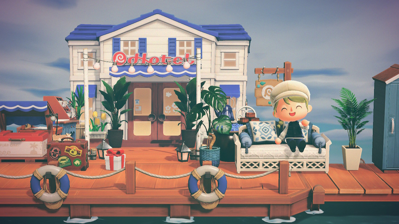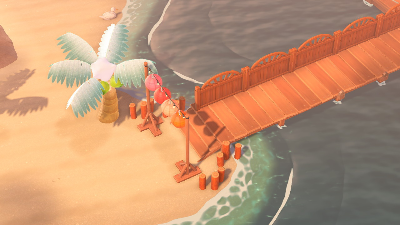 Ich habe bereits darüber geschrieben, wie sehr es mich freut, dass es endlich Katzen auf meiner Insel geben kann. Aber vor einigen Tagen konnte ich das Laternentor bestellen. Diese beiden Items sind meine absoluten Highlights des Updates! Das Braun des Laternentors passt farblich perfekt zu den Latten des Stegs! Obwohl das Hotel zwar auf Blau setzt, ist mein Laternentor trotzdem rot-orange, weil ich diese Farben schöner finde. Aber in den Blautönen würde es zugegebenermaßen besser passen.