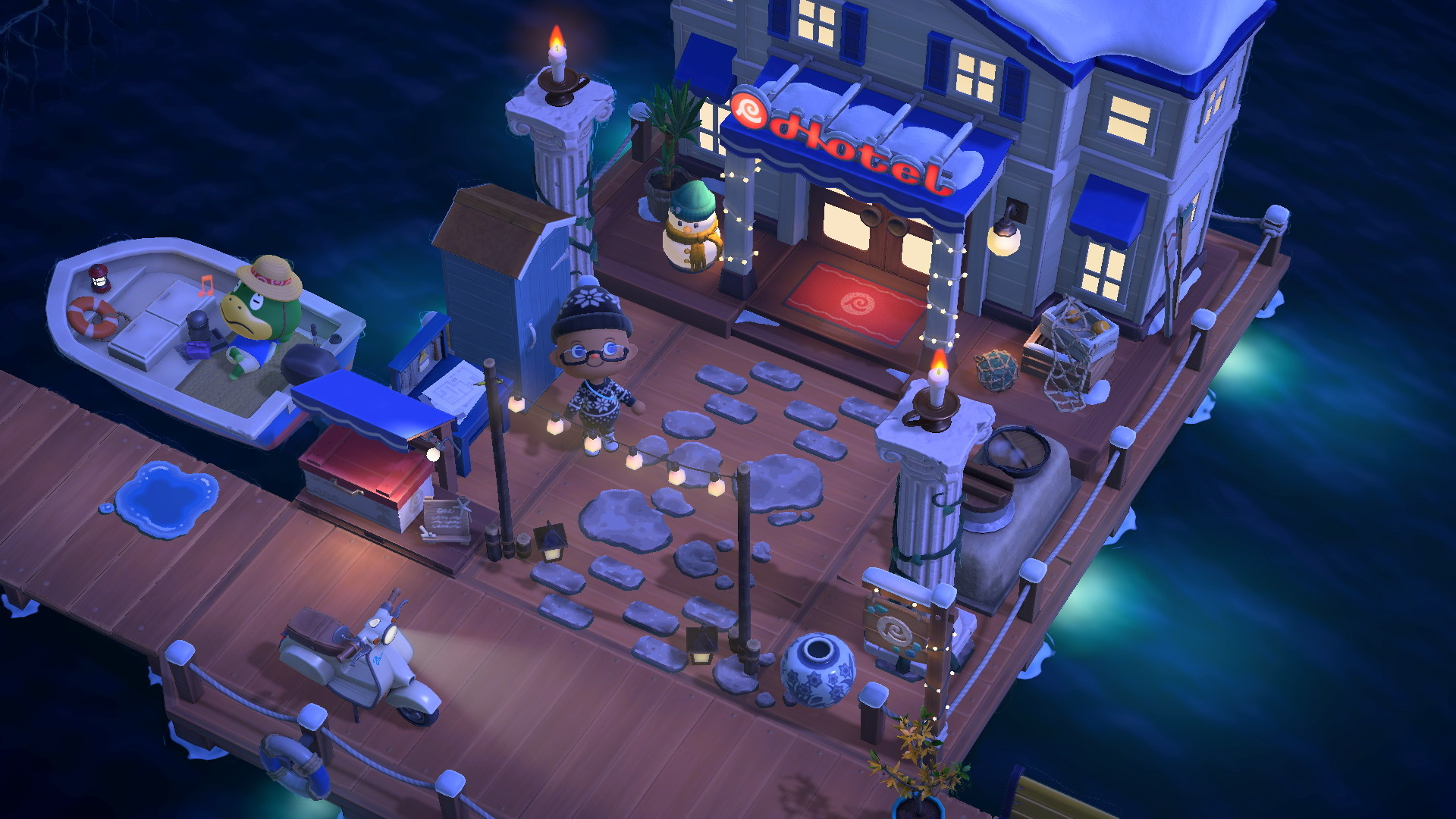 nachdem ich an-ge-ahoi-t wurde, hab ich geclippt und hier mein dekorierter steg / hotel vorplatz. ich denke, ich werde die lampen saisonal anpassen und die federpuschel-karnevals-dinger dann immer austauschen. so kann ich thematisch meine insel in ruhe lassen und doch die saison mit dem gesammelten stuff passend dekorieren.